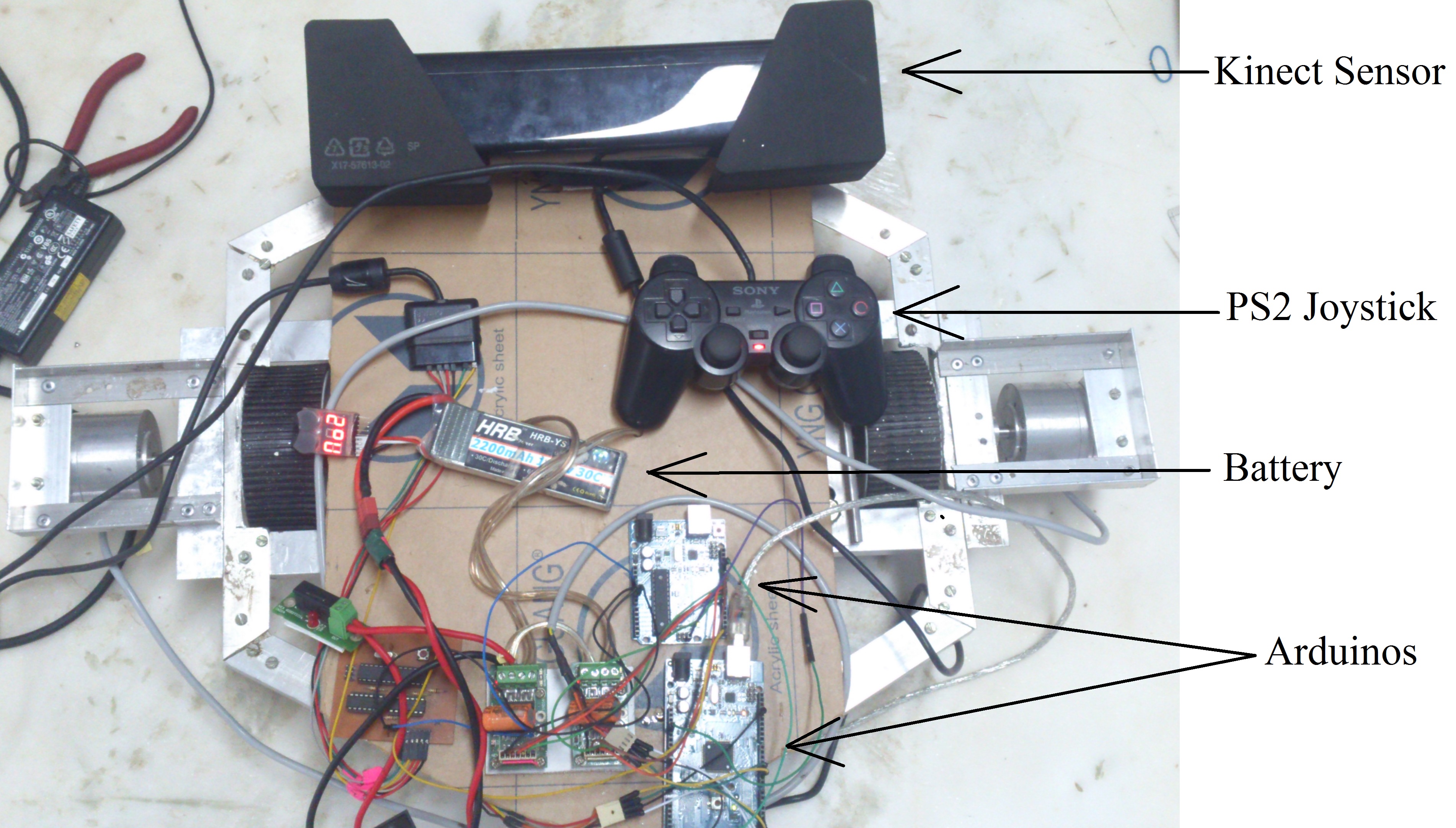 I’ve used a PS2 joystick to control the DC motors. If you too have a PS2 joystick and intend to use it to drive your robot, you can visit this site which addresses the communication between Arduino and PS2 joysticks.